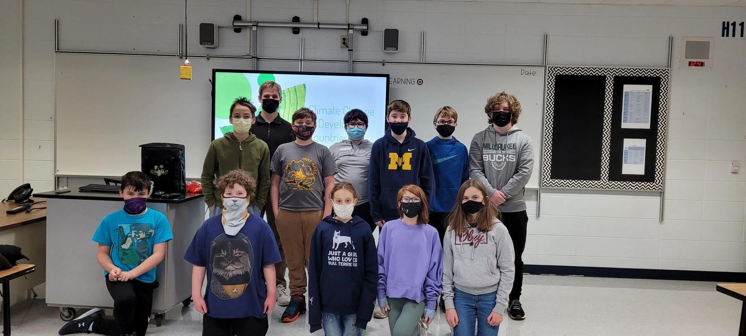 Global Academy teacher Ms. Wayne assists these students as they try to save the world while checking off academic requirements.
